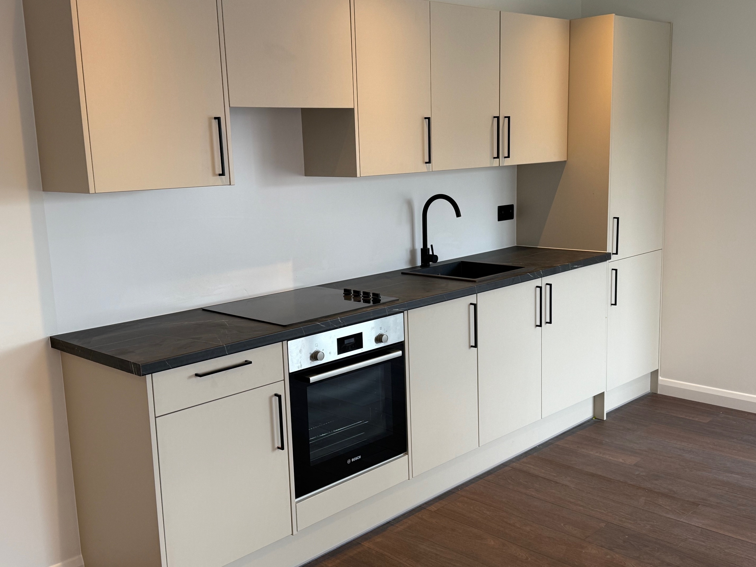 • Fully fitted kitchens with integrated appliances: fridge freezer, washing machine, Bosch oven, hob & extractor
