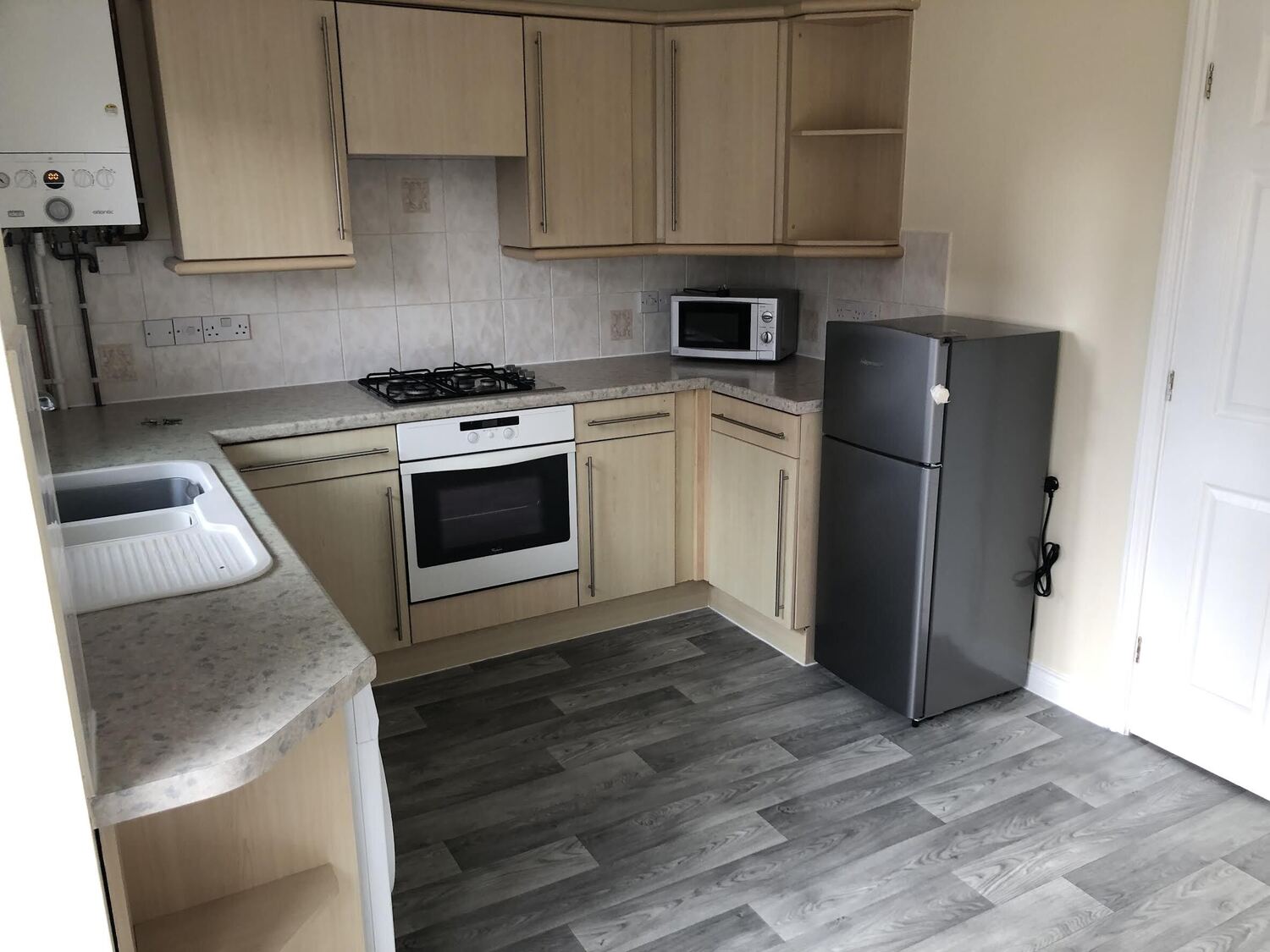 • The modern kitchen leading off from the reception room, has a built-in electric oven and hob with extractor hood - a good range of base and wall units- the kitchen also has a new Fridge Freezer, Microwave and Washing Machine.