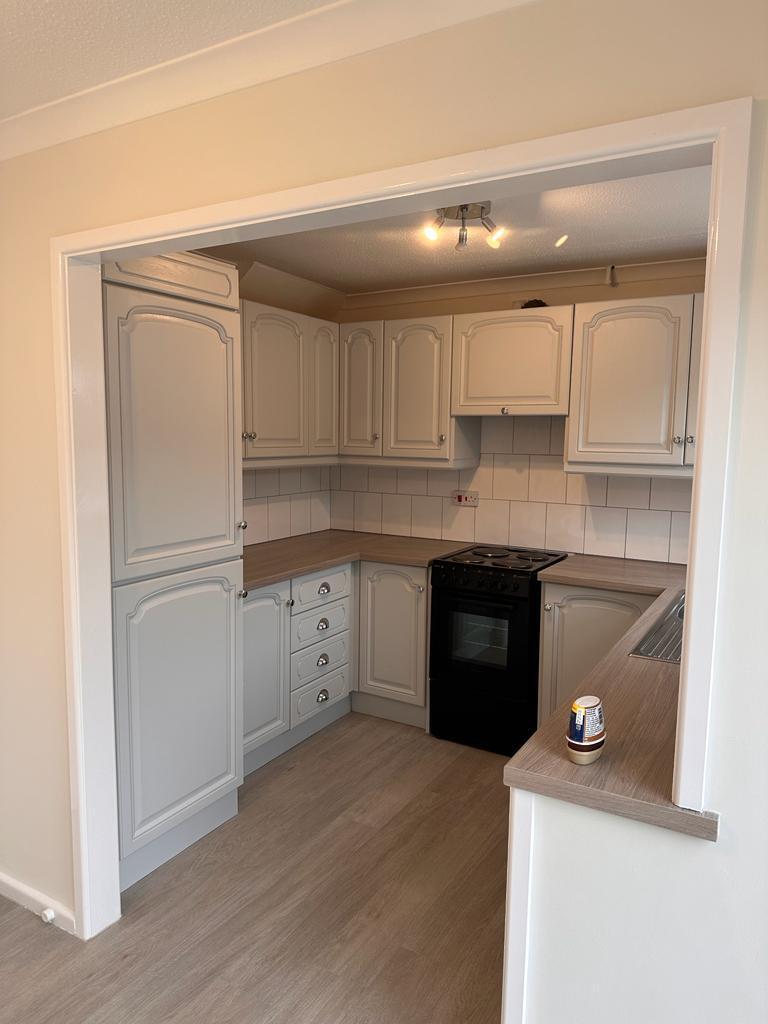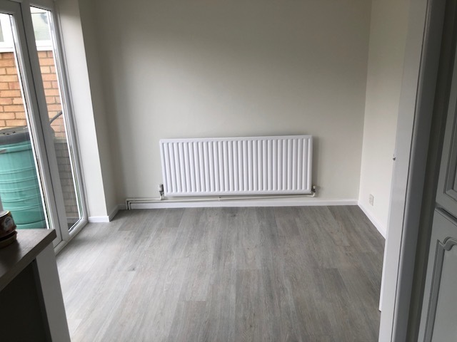 The kitchen has a range of new base and wall units, there is space for a dishwasher and washing machine, and there is an electric cooker. There is a dining area opposite the kitchen in this open plan style kitchen/diner, where there is space for a Fridge/Freezer along with table and chairs.