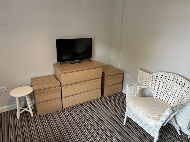 The room is furnished with a double bed, wardrobe, set of drawers and its own private ensuite shower room.